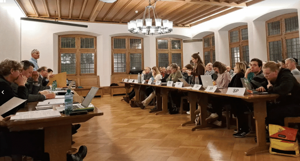 Die Brugger Einwohnerrat tagte am 20. Januar nach 2,5 Jahren Corona-bedingtem «Exil» wieder im Brugger Rathaussaal. Vorher hat der Rat im Campussaal der Fachhochschule Brugg-Windisch getagt. Die engere Sitzordnung und der ehrwürdige Rahmen zeigten gleich Wirkung. Zudem wurden alle Traktanden im GLP-Sinne entschieden.