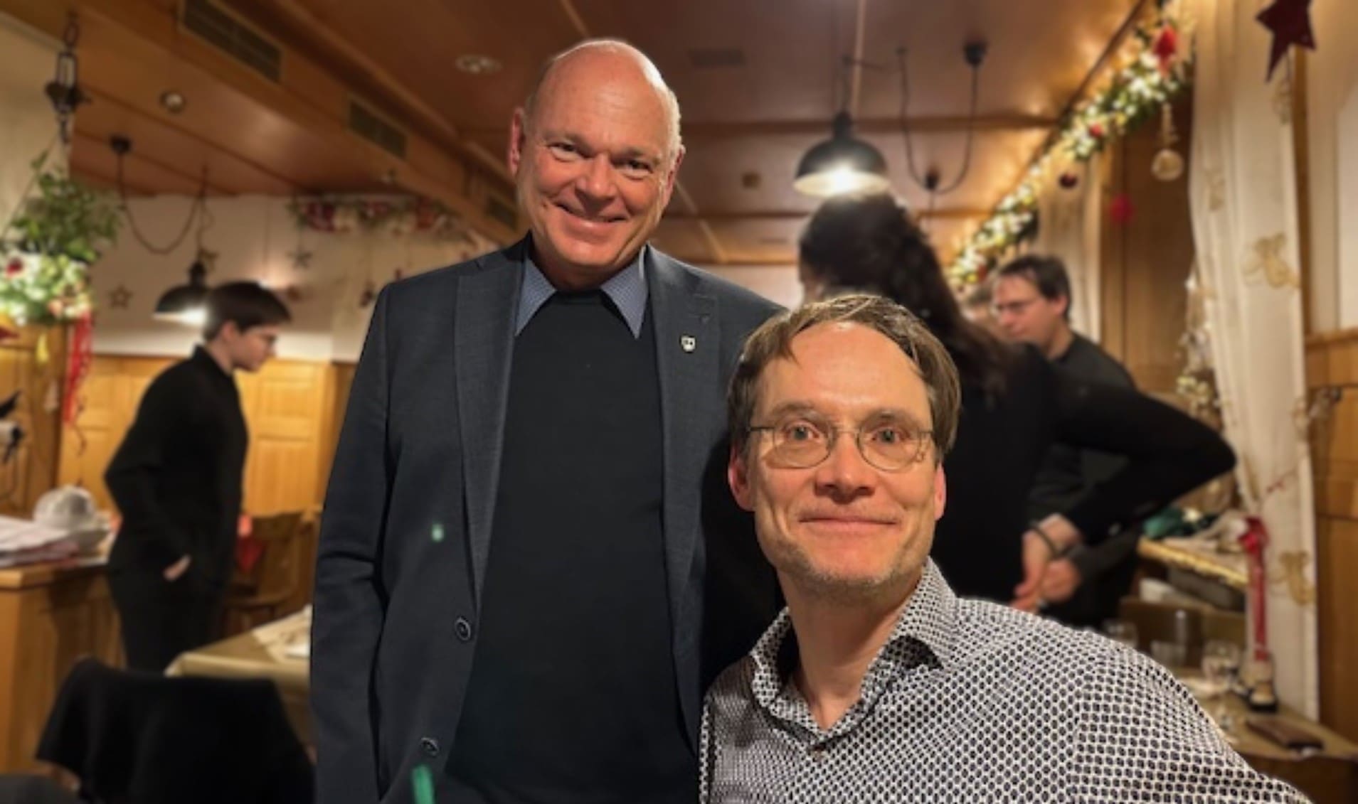 Markus Lang und Adriaan Kerkhoven beim Abschlussessen des Brugger Einwohnerrats – Bild: GLP Brugg