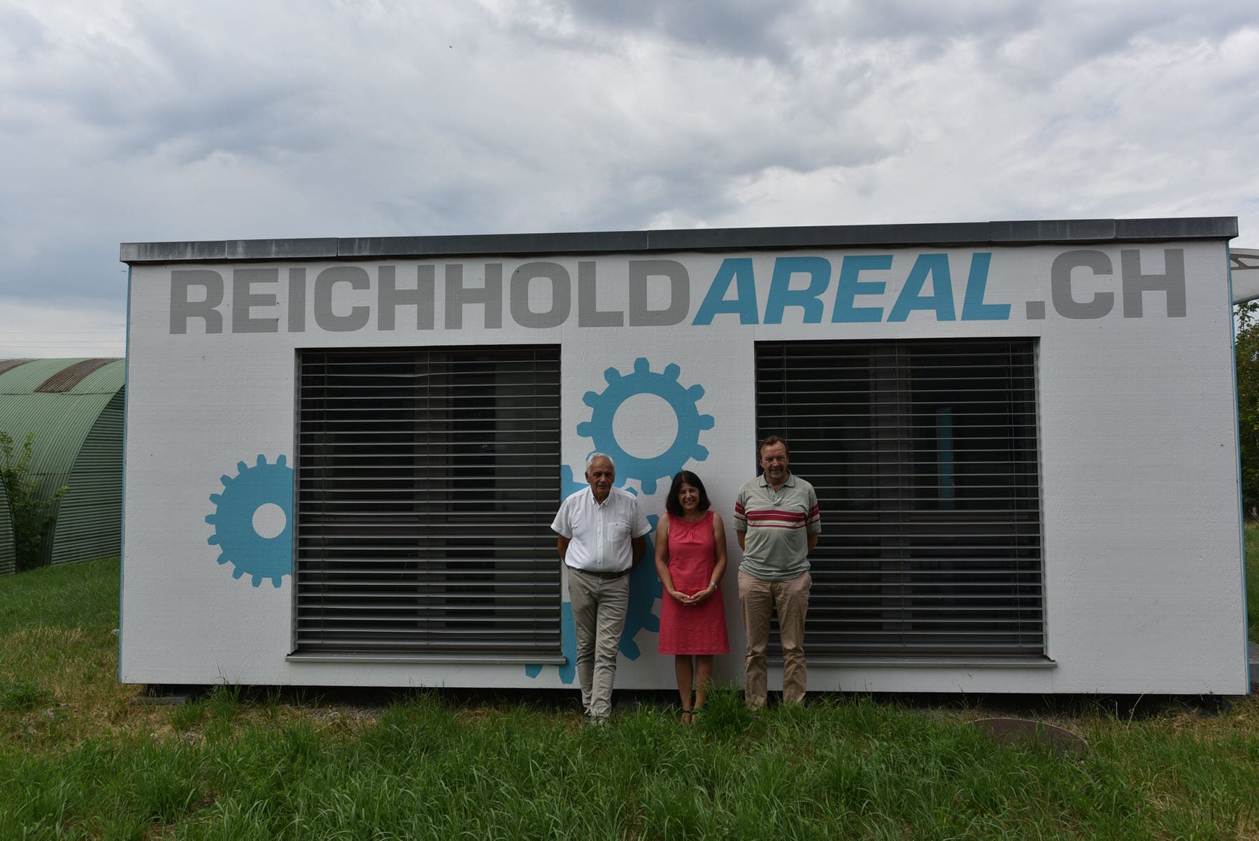 Der Vorstand der GLP Hausen beim Reichhold-Areal (Bild: Brigitte Keller, zvg)